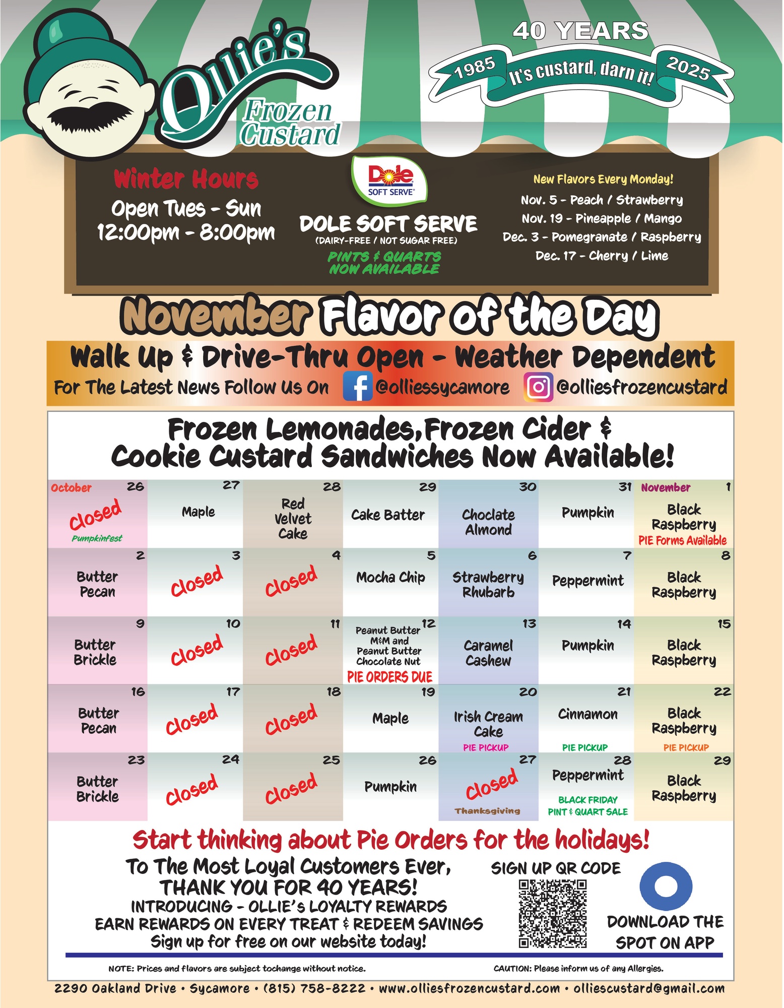 Winter Hours Start Wednesday, November 5th, - Open Noon - 8pm, Closed Mon & Tue